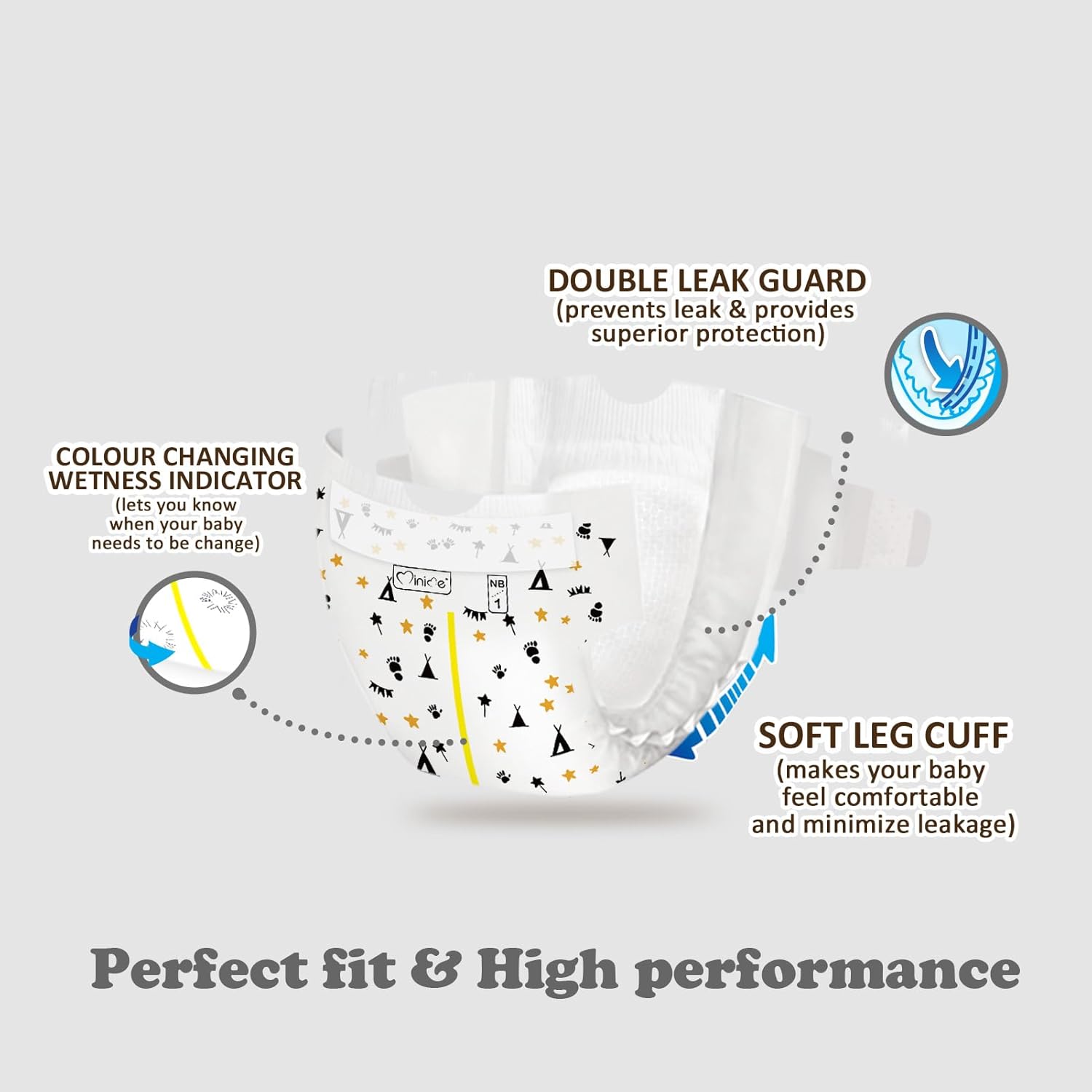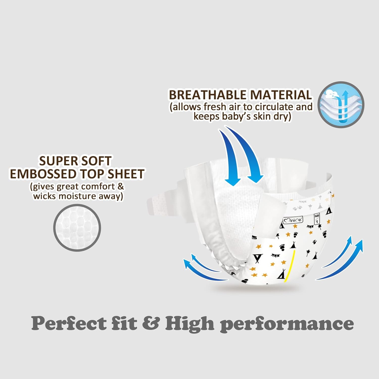 Minime Premium Baby Diapers are crafted with care, drawing on our understanding as parents of the paramount importance of leak prevention and comfort. We’ve experienced those messy situations firsthand and know they’re best avoided. Our diapers are thoughtfully designed with ingredients we’re proud of, ensuring they’re gentle on delicate skin while also being environmentally conscious. We’ve prioritized quality without compromising affordability. Featuring a premium design with thick leg cuffs for superior leak protection and an advanced core that swiftly wicks away moisture, our diapers help minimize irritation. They maintain a snug fit even when soiled, reducing sag and ensuring a secure and comfortable experience for your little one.